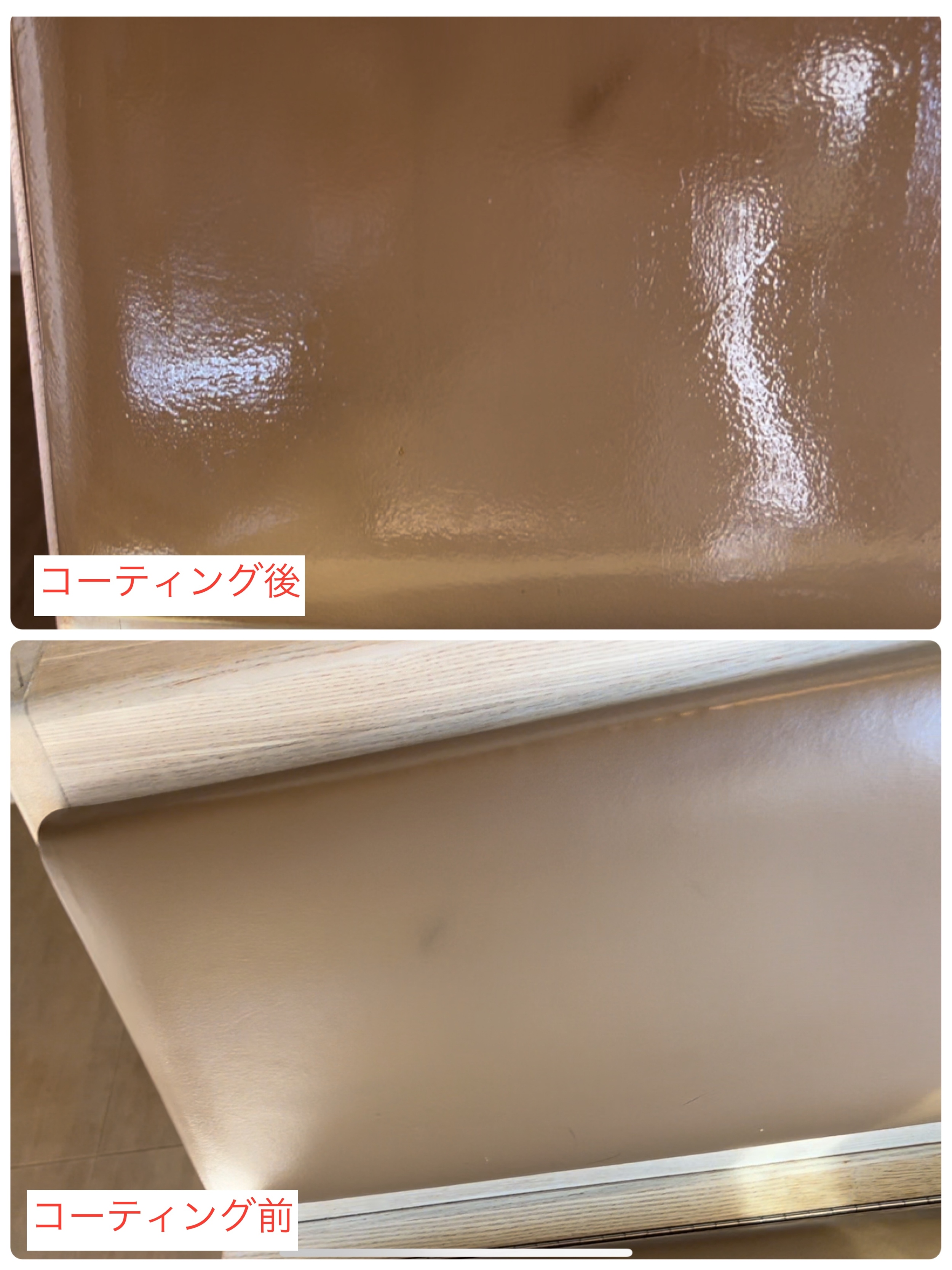 作業直後のビフォーアフター画像になりますが、施工後の光沢は乾燥してもほとんど変わりません!